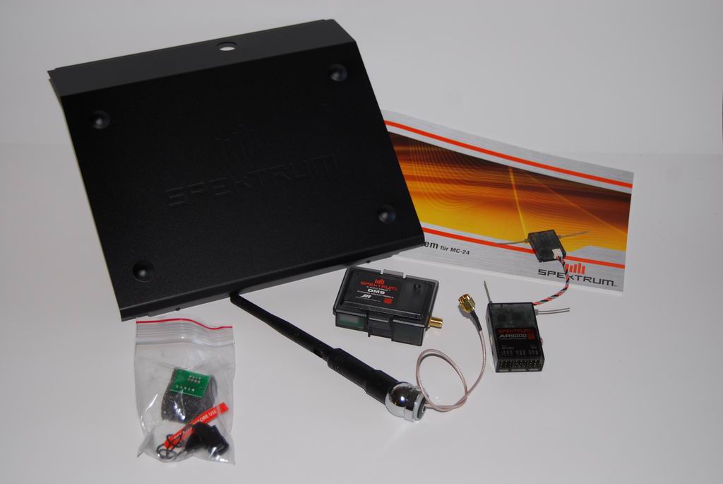 Der Umrüstsatz mit einer neuen Rückwand für die MC24 (wird nicht gebraucht) und einem 9-Kanal Empfänger AR9000.