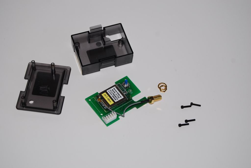 Allerdings war die Programmierung der Modelle auf der DX7 bei weitem nicht so komfortabel, wie bei meiner „alten“ MC22, also kam der Wunsch nach einer Umrüstung auf. Im Herbst brachte dann Spektrum einen Umrüstsatz für die MC24 auf den Markt, bei dem die Antenne anstelle der alten Antennenkugel montiert wurde. Nachdem Frank Simon seine MC20 mit diesem Umrüstsatz ausgestattet hatte und sehr zufrieden war (siehe http://www.rcline.de/modules.php?name=News&file=article&sid=210), bestellte ich mir auch diesen Umrüstsatz. Von der Firma Fantastic Jets (http://www.fantastic-jets.com) wurde noch eine Adapterplatine speziell für die MC22 bestellt. Nach dem Auspacken lagen dann also folgende Teile auf dem Basteltisch: