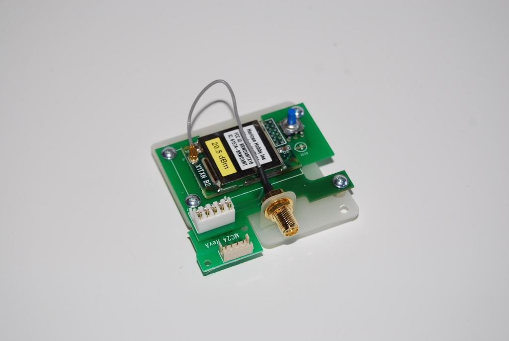In die Steckkontakte des HF-Moduls wird eine kleine Platine gesteckt, die dem Umrüstsatz beiliegt. Entgegen dem Einbau bei einer MC24 muss hier bei der MC22 nichts gelötet werden.